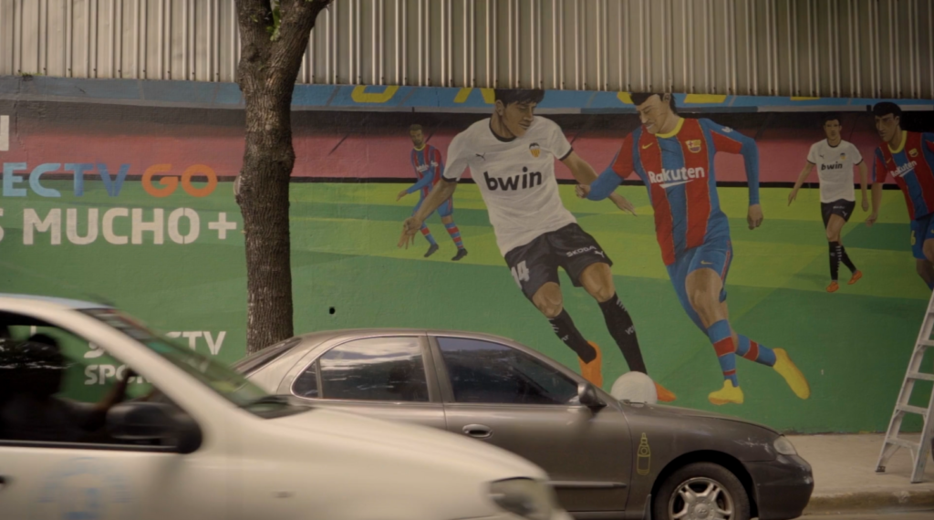 Arte urbano aplicado a la publicidad. Pintura a gran escala que combina creatividad artesanal con presencia única en espacios icónicos de la ciudad.